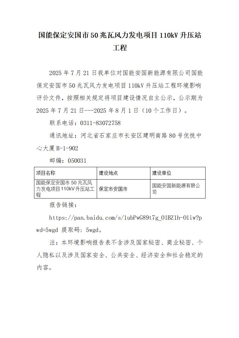 國能保定安國市50兆瓦風力發(fā)電項目110kV升壓站工程